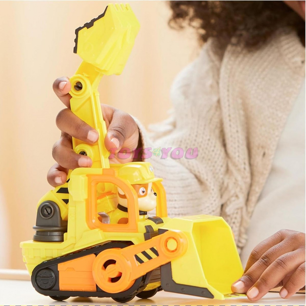 Spin Master Rubble & Crew Základní Vozidlo Rubble. Stavební vozidlo od Rubble má vedle funkčních kol pohyblivou lopatku a funkční bagr – pro dobrodružství se silnými tlapkami
