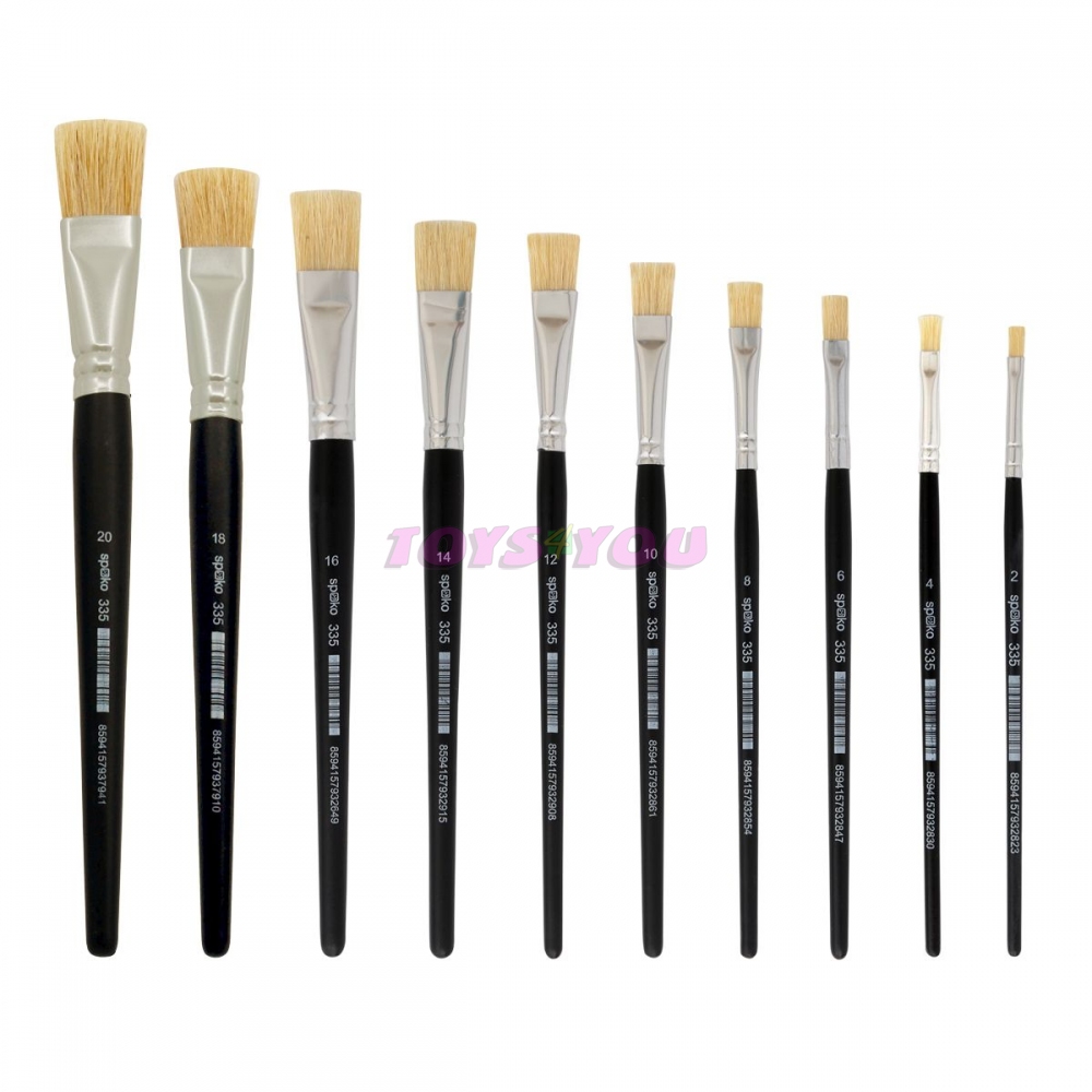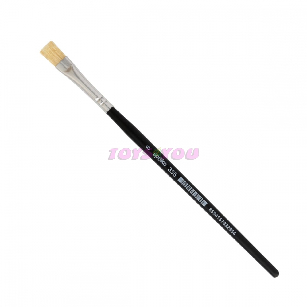 Spoko 033508112 štětec štětinový, plochý, vel. 8. Kvalitní plochý štětec s přírodními štětinami. Dřevěná černá lakovaná násadka s tištěným logem a velikostí. Chromovaná mosazná zděř nekoroduje a udrží štětiny i při opakovaném vymývání. Ideální pro školáky i volnočasové tvoření. délka štětce tohoto typu 17-20 cm, k dispozici 10 velikostí pro práci s hutnými barvami - tempera, akrylové barvy, nanášení lepidel a speciálních laků.