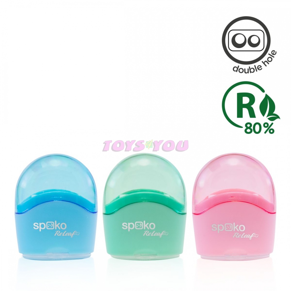 Ostrý řez s respektem k přírodě. Spoko ReLeaf je nová řada produktů značky Spoko, která přistupuje zodpovědně k životnímu prostředí a při výrobě plastových ořezávátek využívá převážně recyklované materiály. Ať už hledáte ten správný typ pro malého školáka nebo precizního studenta, ořezávátka Spoko ReLeaf zaručí dokonale ostré psací potřeby pro každodenní použití.