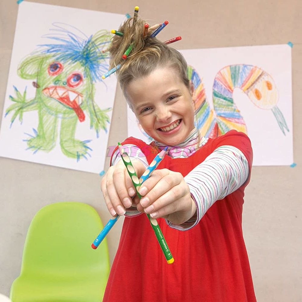 STABILO EASYcolors mají speciální výřezy, které zajišťují stabilitu a správný úchop díky uložení prstů. 6 ks ergonomických trojhranných pastelek je baleno v praktickém uzavíratelném pouzdře. Pastelky jsou ve variantě pro praváky. Po každém ořezání si vždy prsty najdou své místo pro zdravé a uvolněné psaní. Na pastelce je místo na jméno.