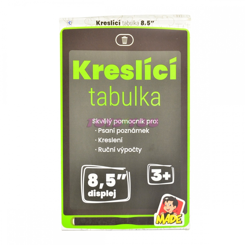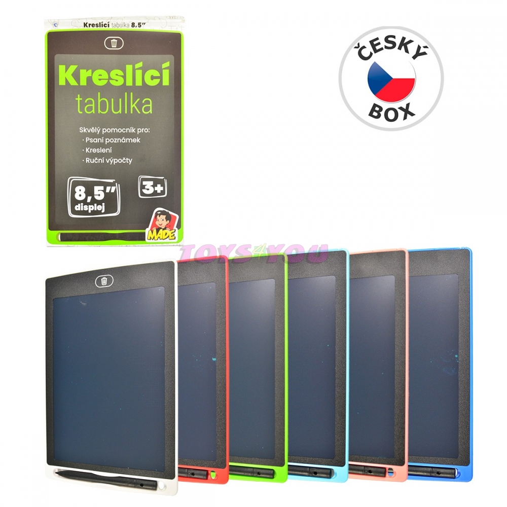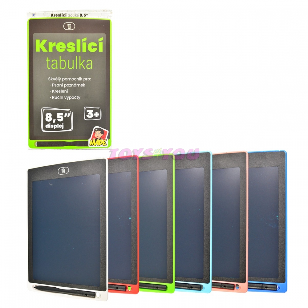 Tabulka kreslící má moderní design tabletu, je krásně tenoučká. Můžete ji hravě použít místo klasického papíru. K tabulce je přiloženo psací pero. Vše co napíšete, namalujete, smažete jedním stisknutím tlačítka a máte tabulku nachystanou k dalšímu použití. Provoz na LR2025 (baterie jsou součástí. V nabídce několik barev (na dotaz).