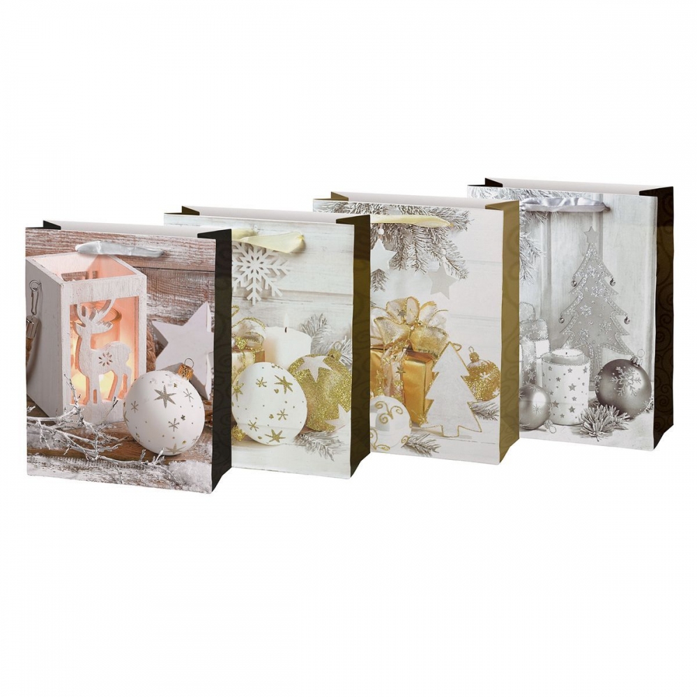 Vánoční dárková papírová taška, je ideální na předání dárků, a velkým pomocníkem když je těžké dárek zabalit do dárkového balicího papíru. Taška je opatřena pevným uchem. Mix vánočních motivů. Rozměr: 180x240x85 mm.