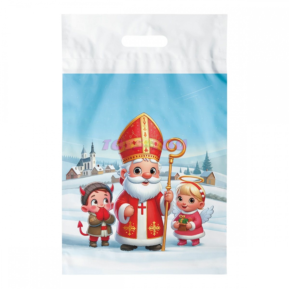Igelitová taška s průhmatem a barevným mikulášským motivem. Je ideální pro různé typy dárků, od malých sladkostí a hraček až po větší předměty. Na tašce je obrázek Mikuláše, anděla a čerta. Taška je vybavena průhmatem, což je otvor v horní části tašky, který slouží jako rukojeť. Tento průhmat umožňuje snadné a pohodlné přenášení tašky. Díky pevnému plastovému materiálu je taška odolná proti roztržení a vlhkosti, čímž zajišťuje, že dárky uvnitř zůstanou v bezpečí a suchu. Barva : bílá Materiál: PE Motiv : mikulášský Rozměr: 290 x 460 x 80 mm Praktické balení: odtrhávací blok Uvedená cena je za 1 ks. Rozměr: 290mm x 460mm x 80mm (Š x V x H) Vyrobeno v EU.