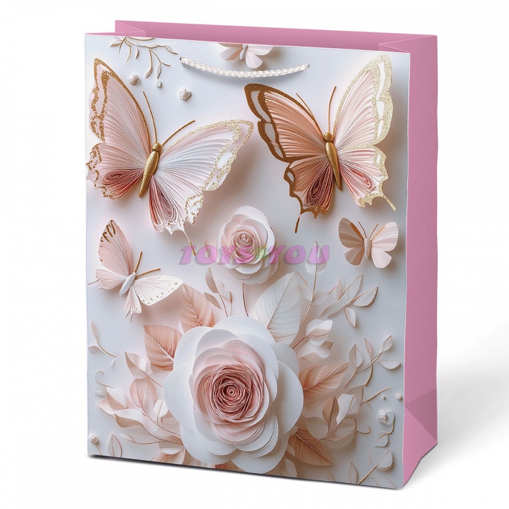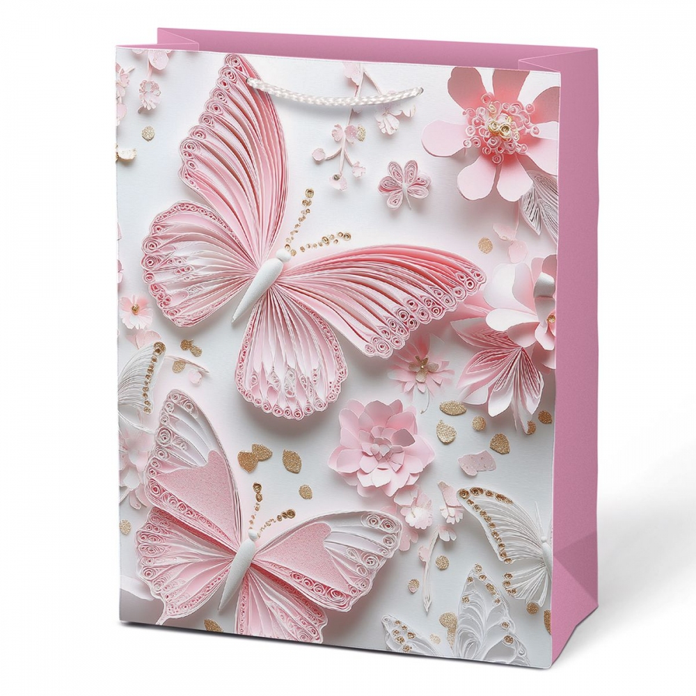 Darovat může být stejně krásné jako dostávat. Dárková papírová taška MFP M LUX v sobě spojuje něžnost i eleganci. Jemné motivy motýlů a květů v odstínech růžové, bílé a zlaté působí romanticky a slavnostně. Díky svému provedení nabízí jednoduchý, ale vkusný způsob balení – dárek do ní stačí vložit a je připraven k předání. Pletená ucha ladí s barvou tašky a dotvářejí její jemný, ucelený vzhled. Motiv: květy, motýli Rozměry: 180 x 230 x 100 mm Dodáváme v mixu čtyř vzorů dle aktuální skladové dostupnosti. Uvedená cena je za 1 ks. Hmotnost: 0.05 kg Rozměr: 180mm x 230mm x 100mm (Š x V x H)