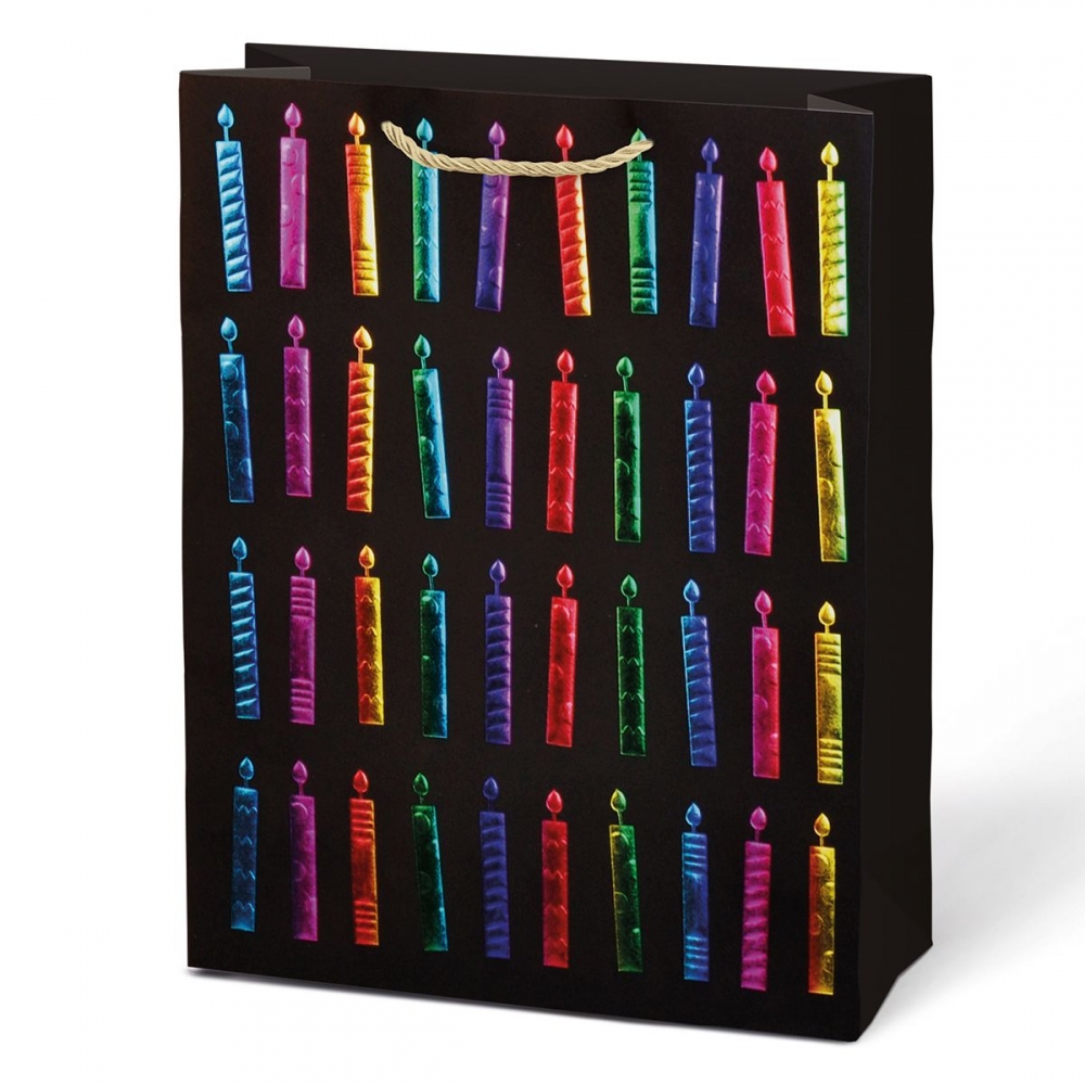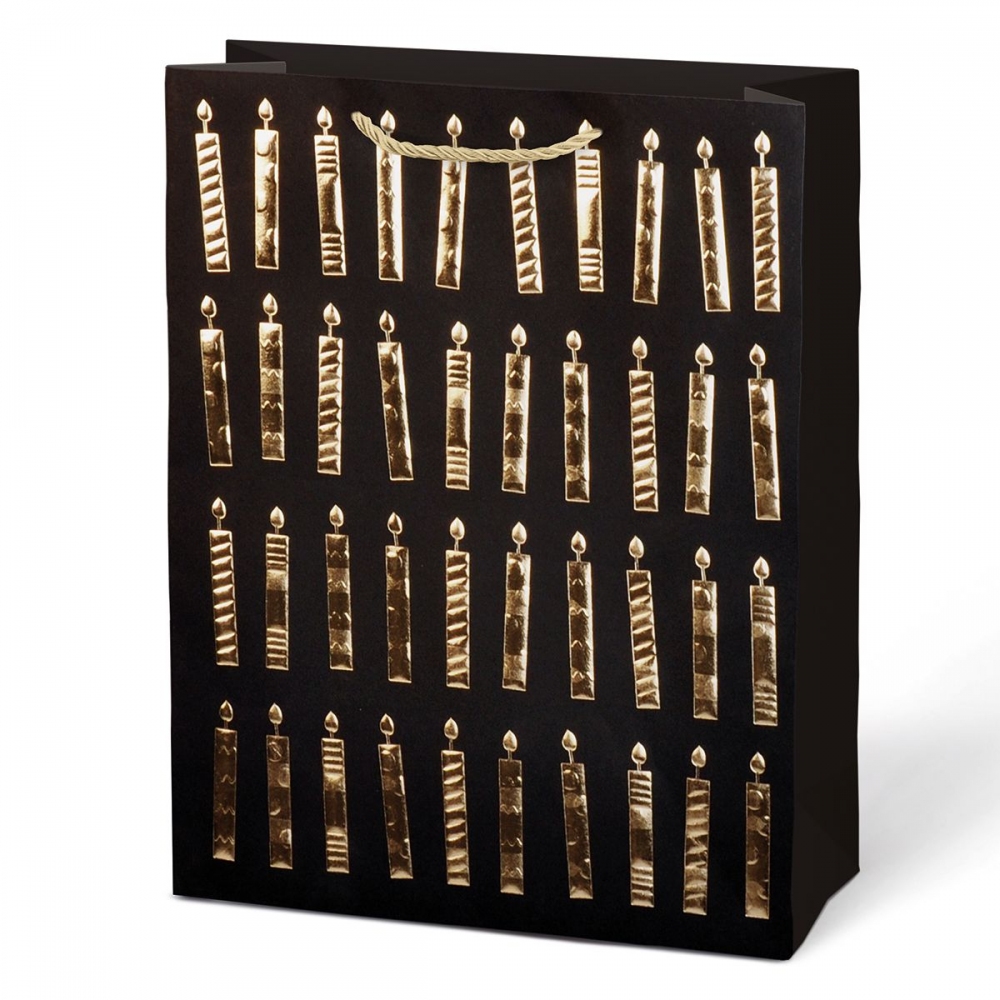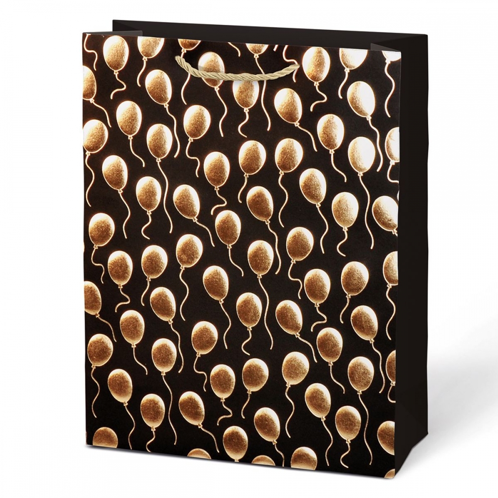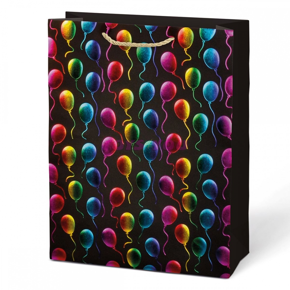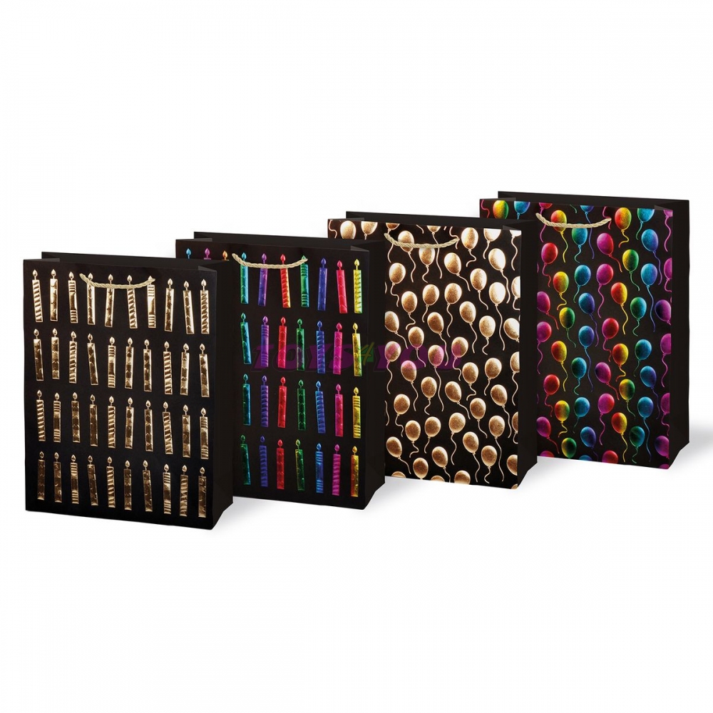 Dárková papírová taška M LUX přináší do balení dárků slavnostní atmosféru. Tmavý podklad zvýrazňuje lesklé motivy svíček a balónků, které působí hravě, ale zároveň elegantně. Každý design je navržen tak, aby podtrhl radostný charakter okamžiku. Taška se hodí pro menší dárky k narozeninám nebo jiným oslavám. Pletené provázkové uši umožňují pohodlné přenášení. Motiv: svíčky, balónky Rozměry: 180 x 230 x 100 mm Barva: černá s metalickým potiskem Dodáváme v mixu 2 motivů a 2 barevných provedení dle aktuální skladové dostupnosti. Uvedená cena je za 1 ks. Hmotnost: 0.05 kg Rozměr: 180mm x 230mm x 100mm (Š x V x H)