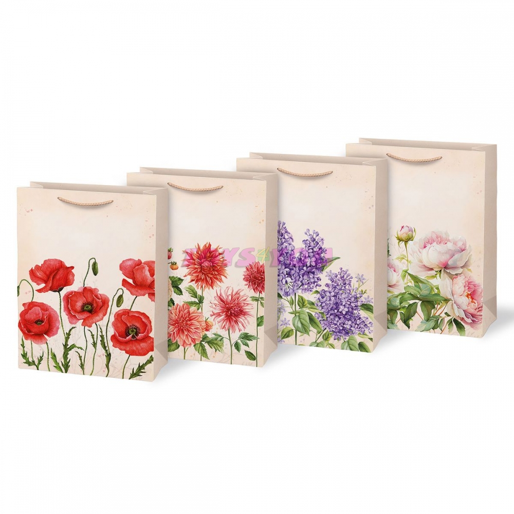 Krásná dárková taška T5 s potiskem. Taška je opatřena pevným uchem pro snadné nošení a kartičkou kam můžete napsat jméno nebo krátké věnování. Pokud nemáte čas balit dárek do dárkového balícího papíru tak právě pro Vás máme široký výběr dárkových tašek. MOTIV - šeřík - jiřiny - vlčí mák - pivoňky Rozměr: 260 x 340 x 140 mm Dodáváme dle skladové zásoby. Uvedená cena je za 1 ks. Rozměr: 260mm x 340mm x 140mm (Š x V x H)