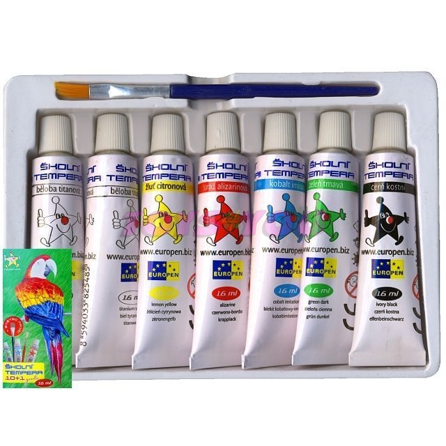 Temperové barvy 6 barev + 1 bílá o obsahu 16 ml.