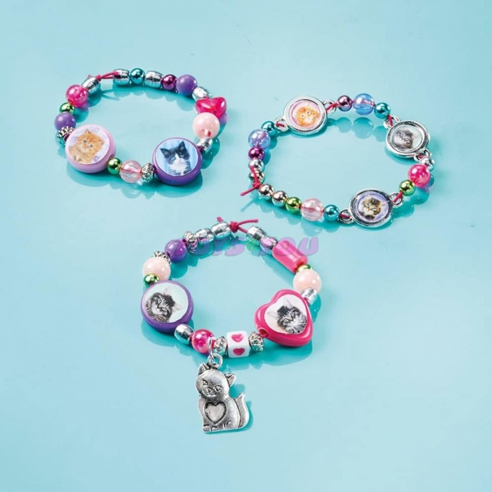 Vyrob si vlastní kočičí šperky. Obsahuje: 3x přívěsek, 1x přívěsek koťátko, 3x průhledná samolepka, nálepky s koťátky, různé korálky, růžové elastické vlákno, kovový kroužek a návod. Rozměry: 13 x 19 x 3,5 cm. UPOZORNĚNÍ: Nevhodné pro děti do 3 let. Nebezpečí vdechnutí. Obsahuje malé části. Vhodné pro děti od 4 let. Délka 0.035 m Šířka 0.13 m Výška 0.19 m. Věk: 3+