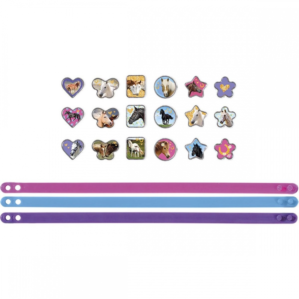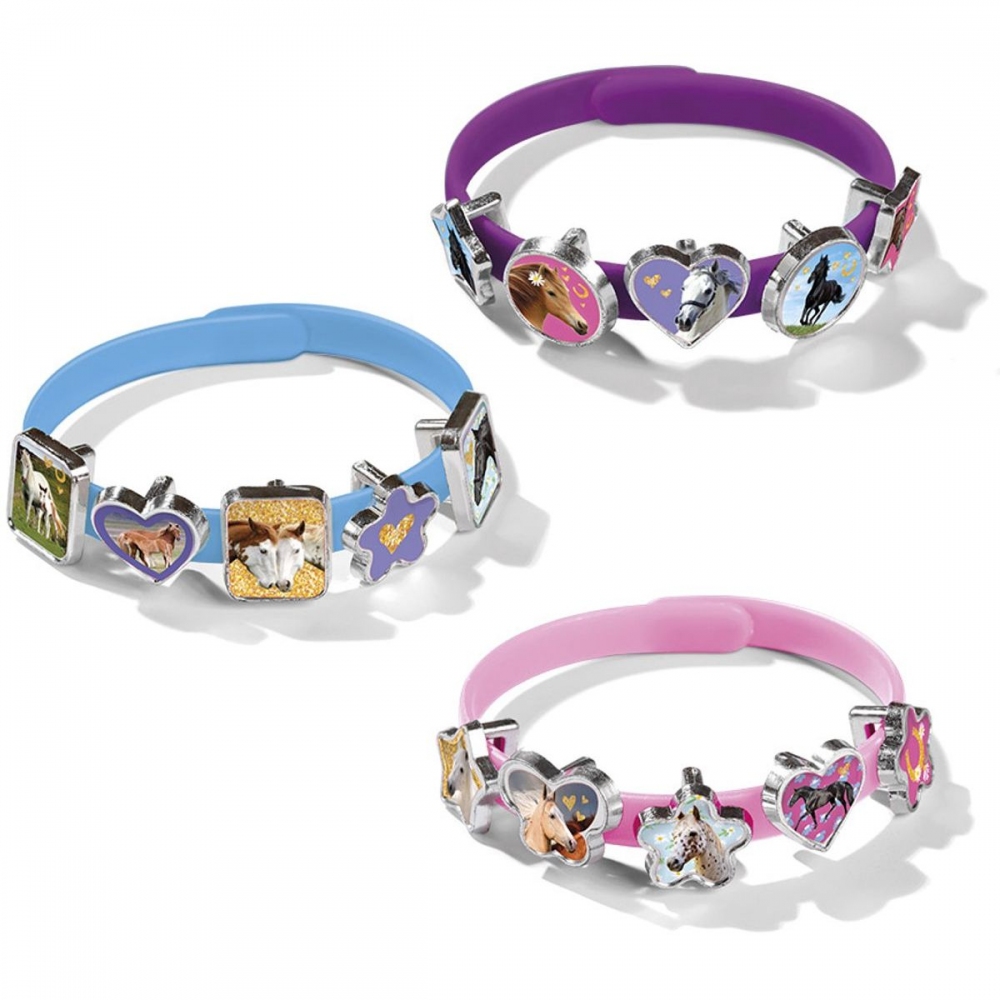Koně - vyrob si náramky Vynikající hračka pro rozvoj manuální zručnosti. Vše potřebné k výrobě najdete uvnitř balení. Balení obsahuje: tři plastové náramky barvy růžové, modré,fialové a 18 různých druhů doplňků s motivem Koní. UPOZORNĚNÍ: Nevhodné pro děti do 3 let. Nebezpečí vdechnutí. Obsahuje malé části. Rozměr balení: 15 x 20,5 x 2,5 cm. Doporučeno pro děti od 3 let. Váha 0.07 kg Délka 0.025 m Šířka 0.15 m Výška 0.205 m. Věk: 3+.
