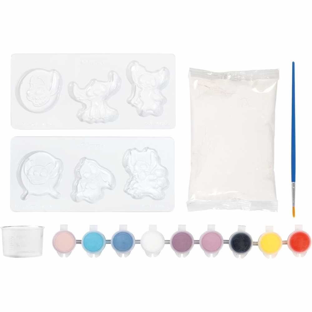 Vyrobte si vlastní sádrové figurky Stitch. Obsahuje: formu, sádru, odměrku, 6 barev na vymalování, štětec a návod. UPOZORNĚNÍ: Nevhodné pro děti do 3 let. Nebezpečí vdechnutí. Obsahuje malé části. Váha 0.44 kg Délka 0.03 m Šířka 0.175 m Výška 0.245 m. Věk: 3+