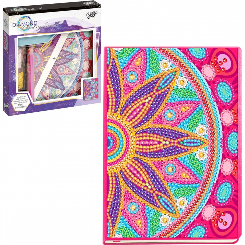 Diamantový deník Květina. Vyrobte si ze svého deníku to nejkrásnější umělecké dílo! Pomocí lepících kamínků / "diamantů" vytvoříte originální deník, který ve Vašem okolí nikdo nemá! Obsahuje: blok ( 13x18 cm ), lepící čtvereček, cca 1500 ks kamínků (10 barev), třídírna na kamínky, speciální tužku na přenos kamínků a návod k použití. Rozměr: 20,5 x 19 x 3 cm. Věk: 6+