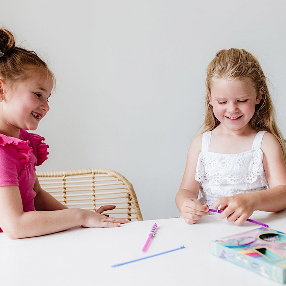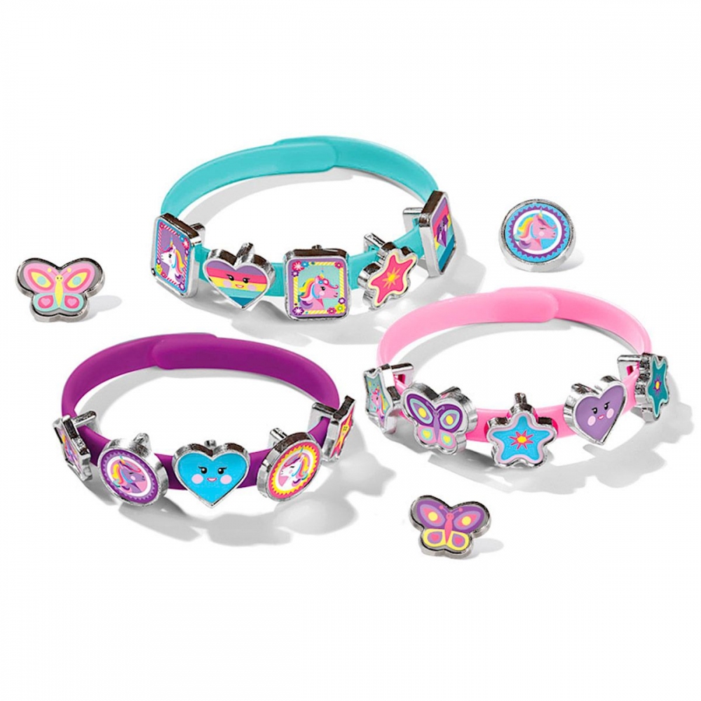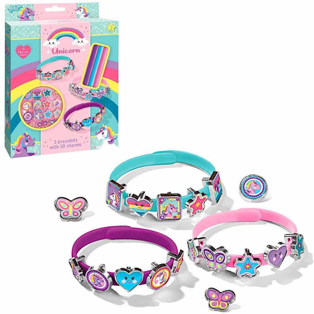 Jednorožec - vyrob si náramky. Vynikající hračka pro rozvoj manuální zručnosti. Vše potřebné k výrobě najdete uvnitř balení. Balení obsahuje: tři plastové náramky barvy růžové, modré,fialové a 18 různých druhů doplňků s motivem Jednorožce. Rozměr balení: 21 x 15 x 2,5 cm. Věk: 3+