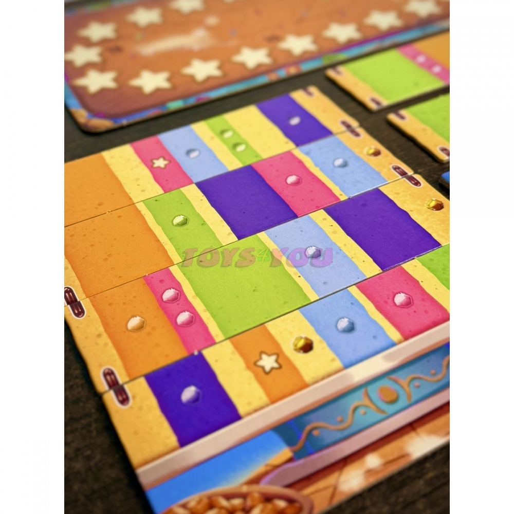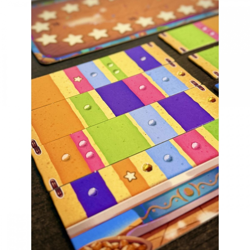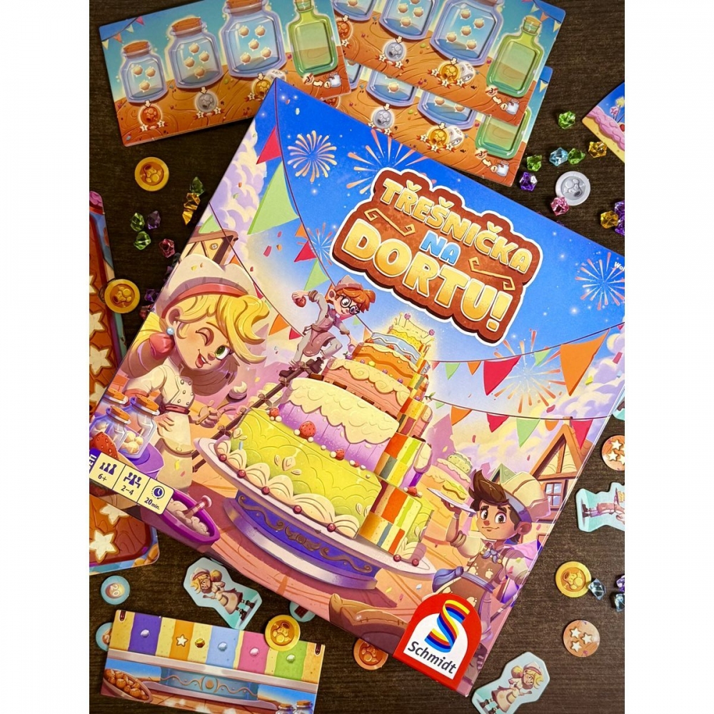 - Díky barevnému zpracování, výrazným komponentům a atraktivnímu vizuálu působí hra na stole doslova jako skutečný dort plný cukrové fantazie.