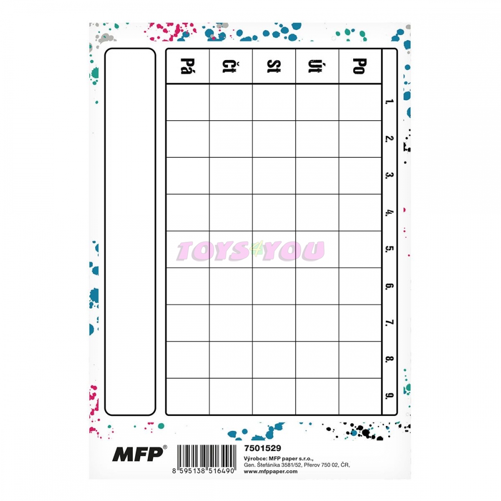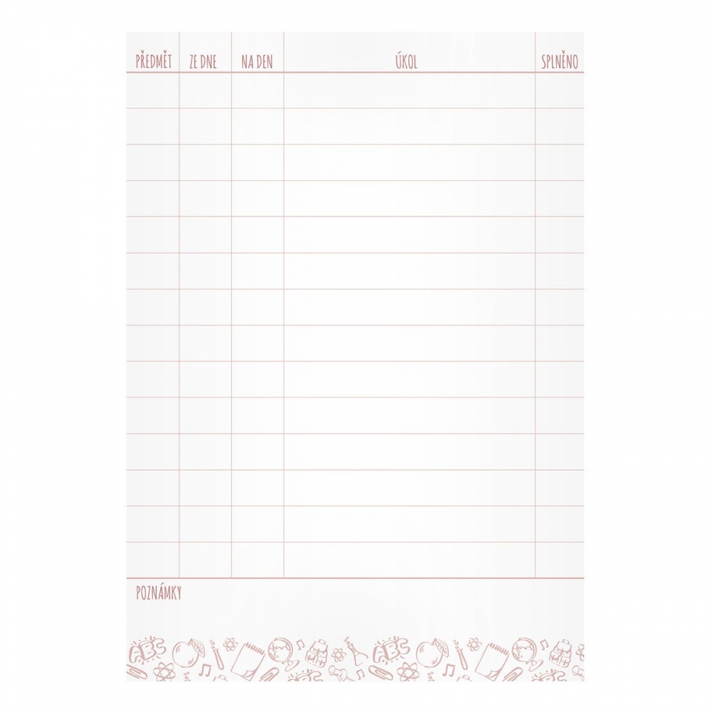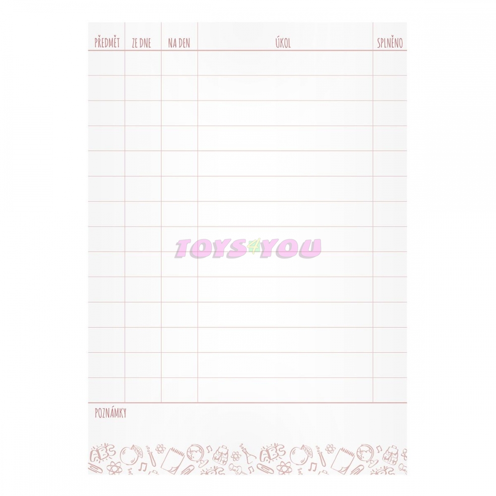 Nepamatuje si Vaše dítě, co má dělat za úkoly? Kupte mu úkolníček, který slouží k přehlednému zapisování domácích úkolů. Úkolníček obsahuje: osobní údaje, telefonní čísla, prostor pro poznámky, malá násobilka, geometrické vzorce a matematické vzorečky, vyjmenovaná slova a rozvrh hodin. Formát: A5. Počet stran: 40 stran. Rozměr: 147mm x 210mm x 3mm (Š x V x H)