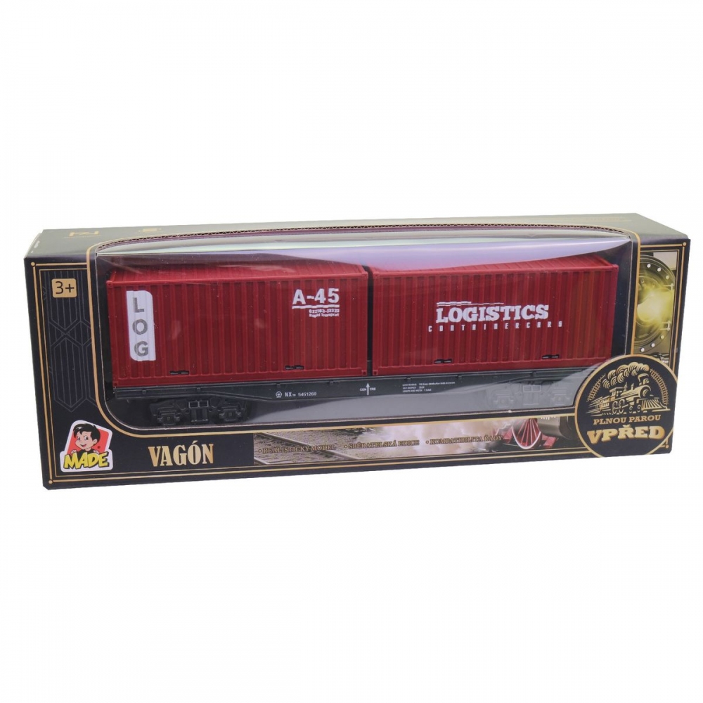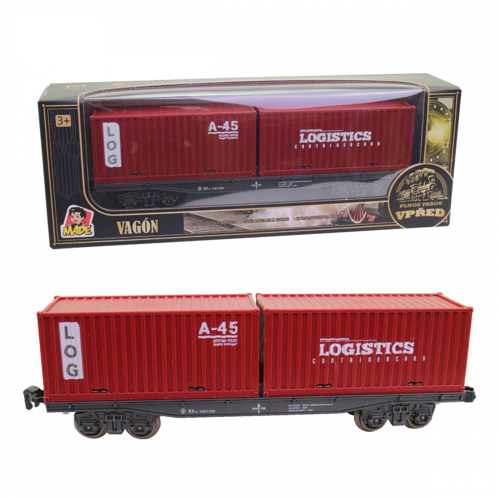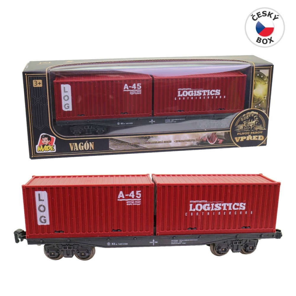 Vagón, kontejnerový, 25 cm. Rozšiř si svou železniční stanici o tolik vagónů kolik jen budeš chtít. Tou správnou volbou jistě bude realisticky vyhlížející kontejnerový vagón v nepřehlédnutelné červené barvě. Co pak asi za náklad skrývá? Hračka je určena pro děti 3+. Rozměr hračky je 24,8 x 4,7 x 7,3 cm. Rozměr balení: 28 x 6 x 10 cm. Materiál hračky je plast. Balení hračky je window box. Produkt je určený pro kohokoliv. Baterie NE Obsahuje bat. NE Doporučeny věk 3+ Typ obalu window box Výška boxu 28 cm Šířka boxu 6 cm Hloubka boxu 10 cm Materiál plast Rozměr hračky 24,8 x 4,7 x 7,3 cm Určení Kluky Vhodné pro děti od 3 let.