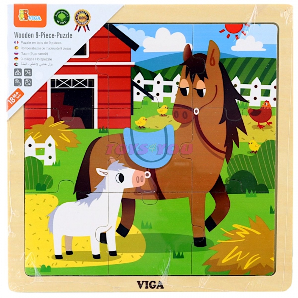 Dřevěné puzzle 9 dílků s obrázkem koníků. Rozměr dřevěné desky cca 22 x 22 x 1 cm. Rozměr balení cca 22 x 22 x 1 cm. Věk 18m+ Značka: VIGA Délka: 22.00 cm Šířka: 1.00 cm Výška: 22.00 cm Věk: 18m+