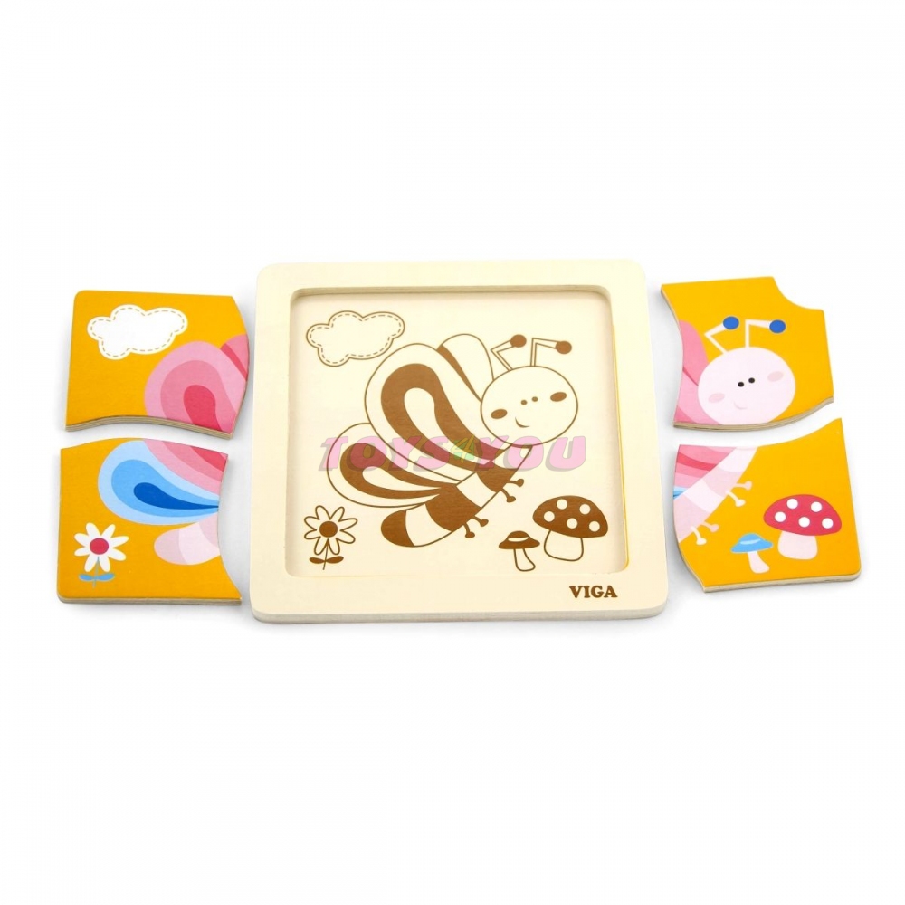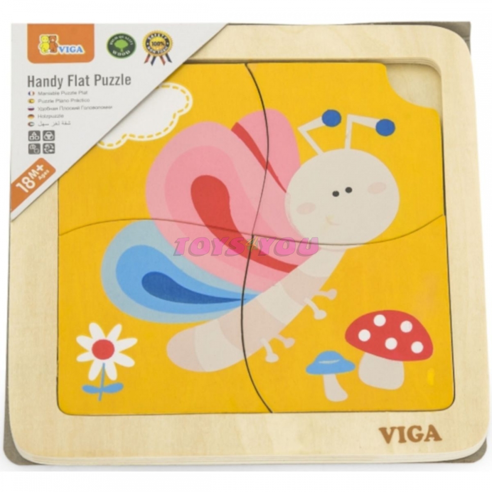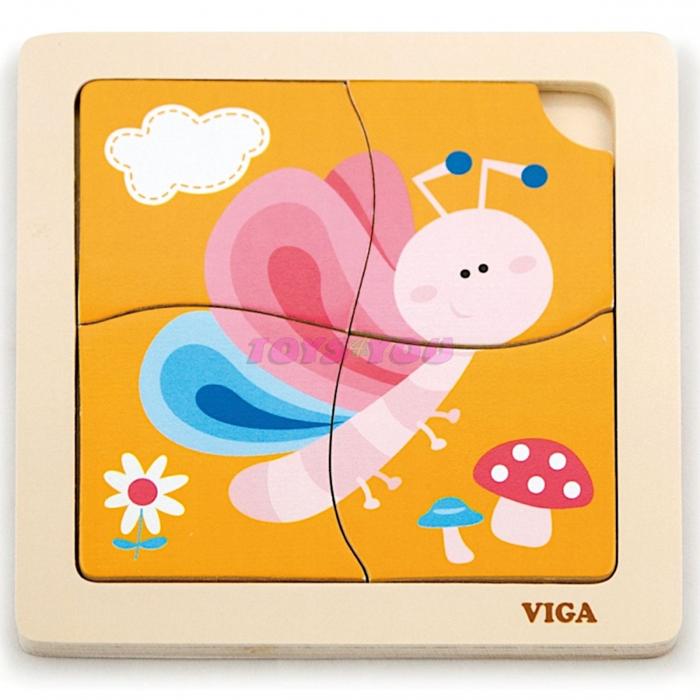 Dřevěné puzzle motýl, obrázek o rozměru cca 12 x 12 cm. Rozměry balení cca 15 x 15 x 1 cm. Věk 18m+