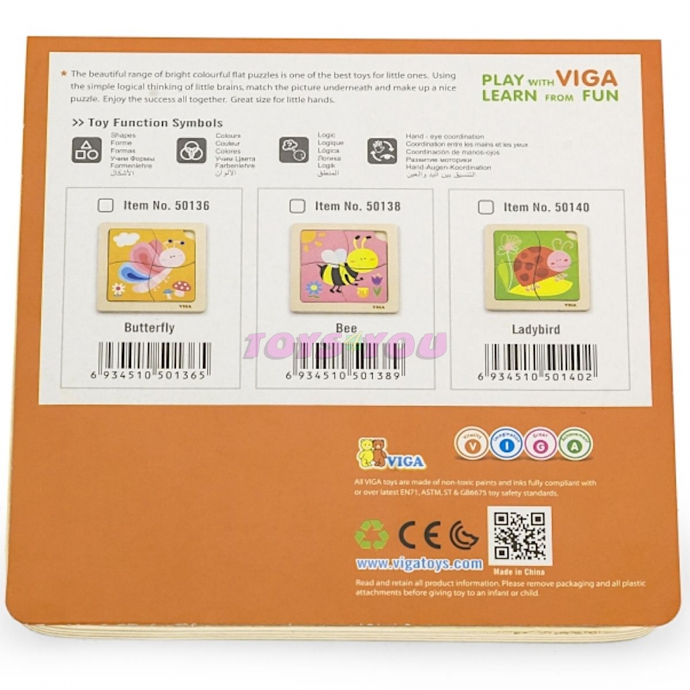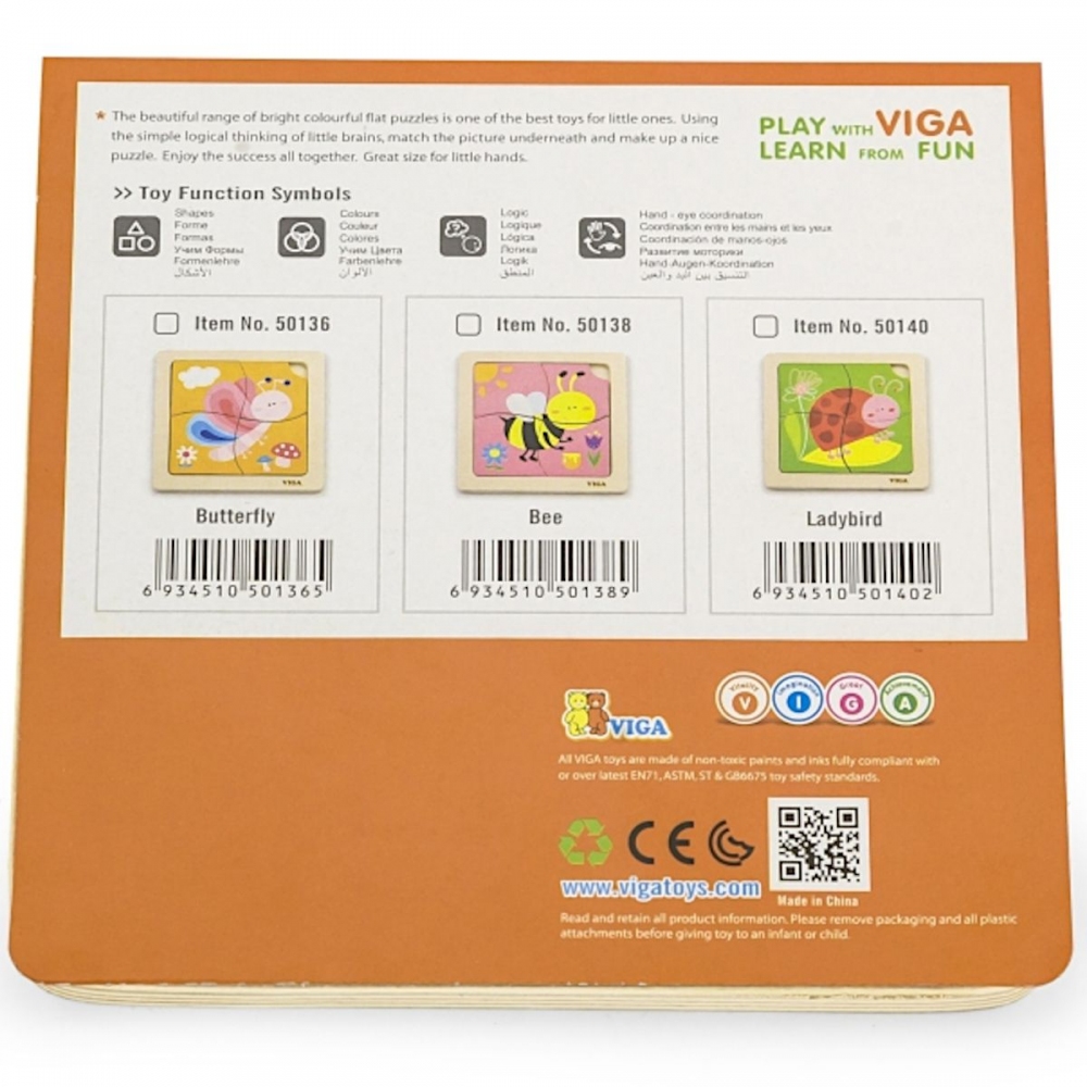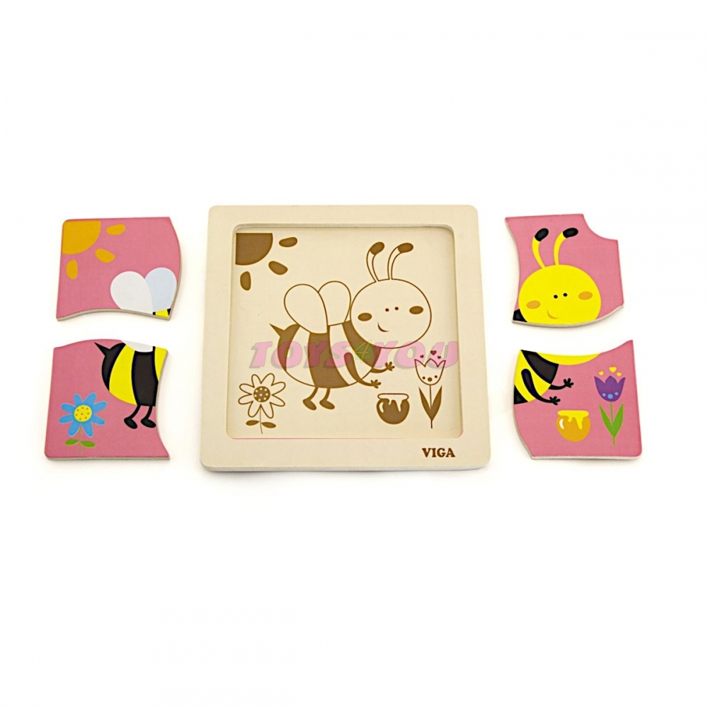 Dřevěné puzzle včelka, obrázek o rozměru cca 12 x 12 cm. Rozměry balení cca 15 x 15 x 1 cm. Věk 18m+