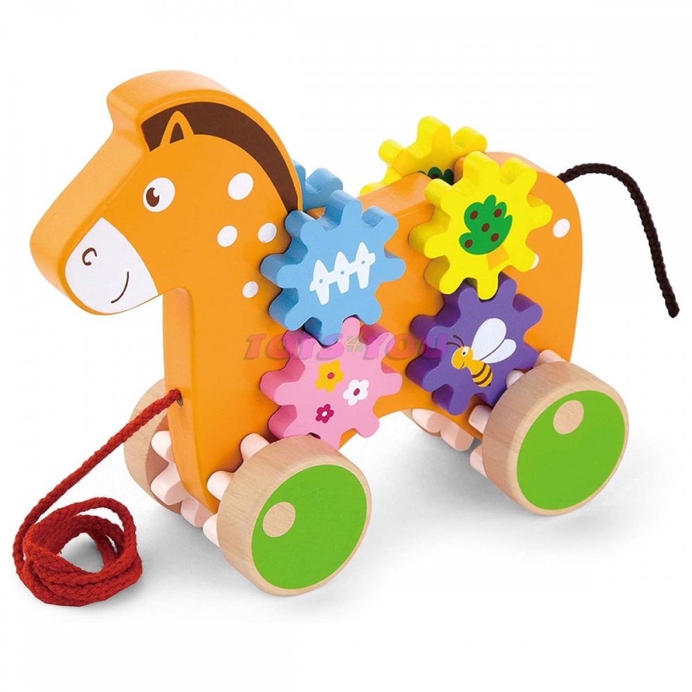 Dřevěná tahačka kůň s ozubenými kolečky, která se točí, když koník jede. Délka provázku je 65 cm. Rozměry koně cca 19,8 x 17,2 x 4,5 cm. Značka: VIGA Délka: 23.50 cm Šířka: 8.50 cm Výška: 23.00 cm Upozornění: Určené pro děti od 18 měsíců. Obal není součástí výrobku. Před použitím odstraňte veškeré součásti obalu. Obal by měl být zachován - může obsahovat důležité informace. Výrobek se může od vyobrazení lišit. Země původu Čína. Upozornění: kvůli šňůře zde existuje nebezpečí uškrcení! Věk 18m+