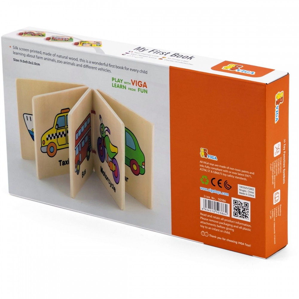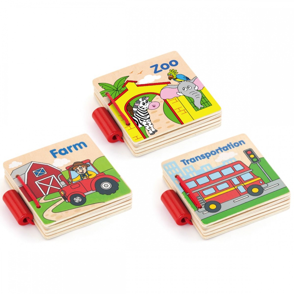 Dřevěná knížka s obrázky zvířátek z farmy. Rozměr balení cca 10,5 x 8 x 2 cm. Věk 12m+