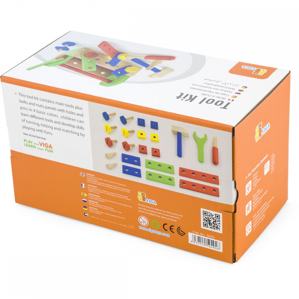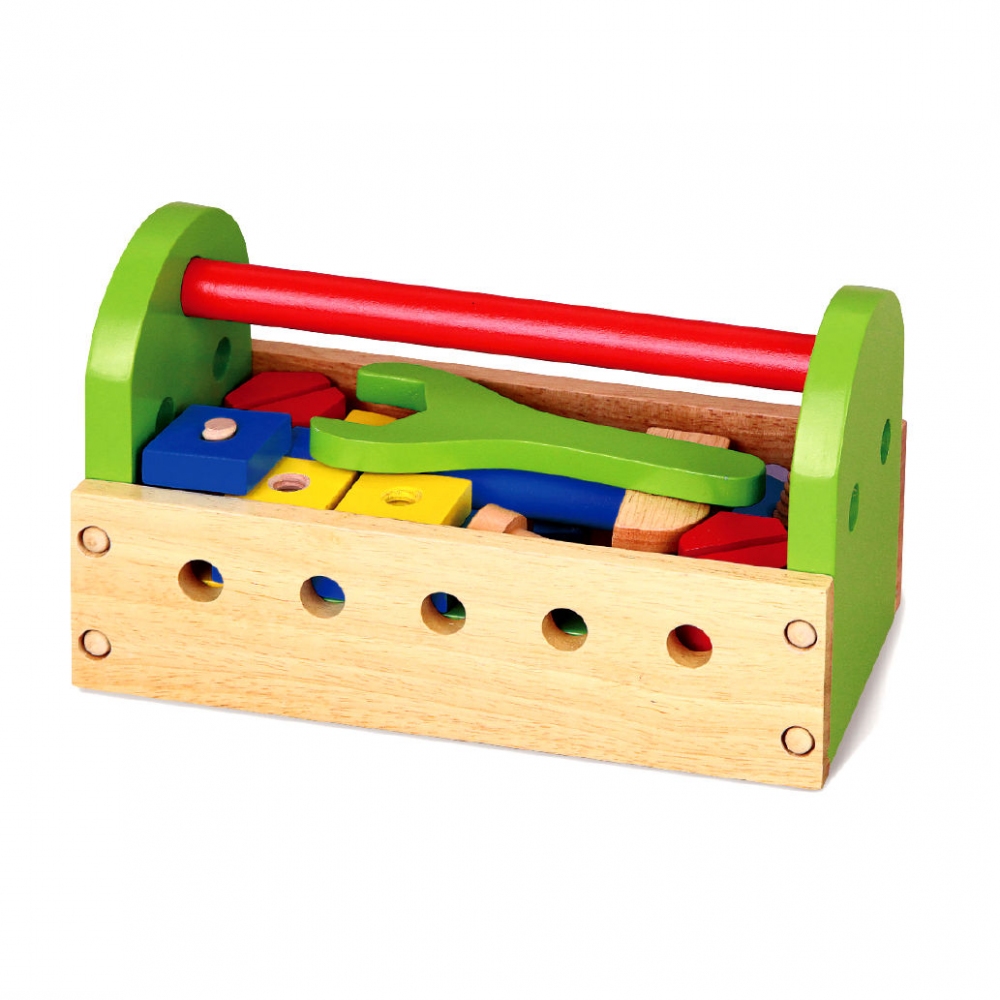 Sada dřevěného nářadí v přepravce. Probuď v sobě opraváře a sešroubuj dílky, které jsou potřeba. Šrouby a matice to vše najdeš v této originální dřevěné sadě! Perfektní pro rozvoj motoriky, vnímání tvarů a barev. Obsahuje: Šroubovák. Kladívko. Klíč. Šrouby. Matice a destičky pro šroubování. Specifikace: Rozměry přepravky cca 25×12×14 cm. Rozměry balení cca 26×13×15 cm. Vhodné pro děti od 3 let.