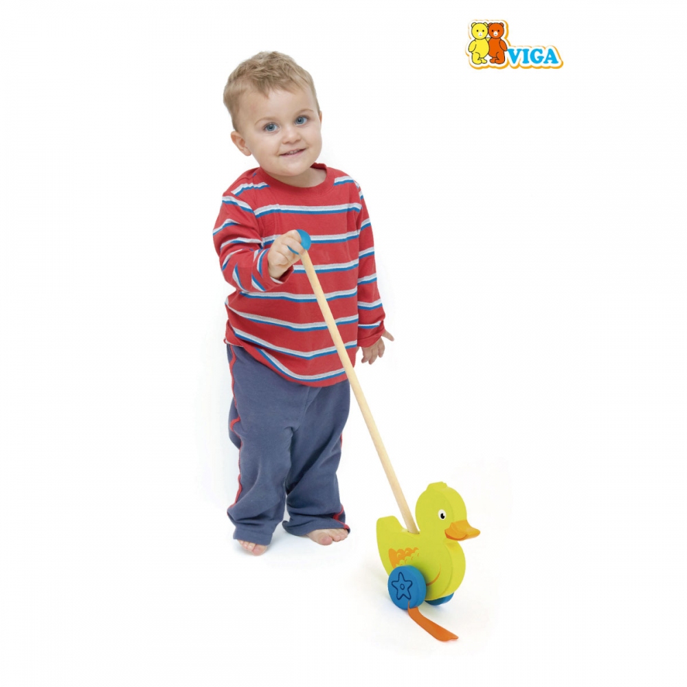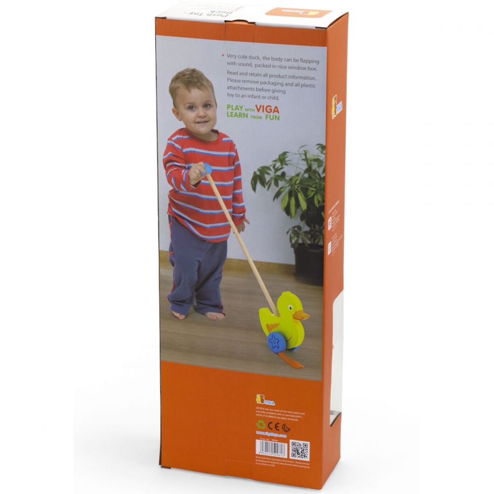 Dřevěná tahačka kačenka. Rozměry kačenky cca 16 x 10 cm + dřevěná tyč na tlačení. Rozměry balení cca 50 x 18 x 8,5 cm. Věk 18m+
