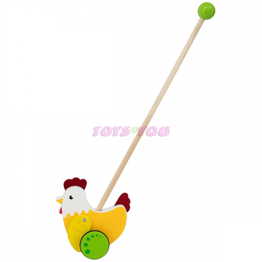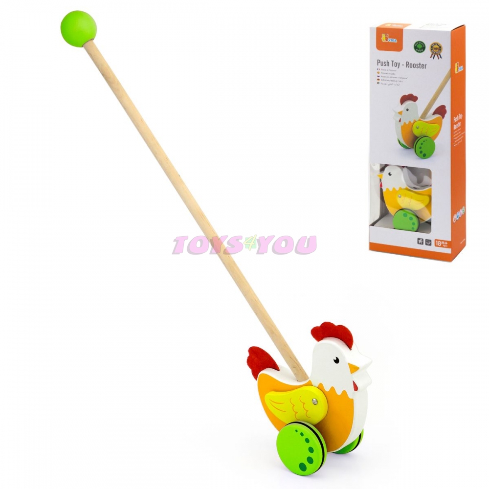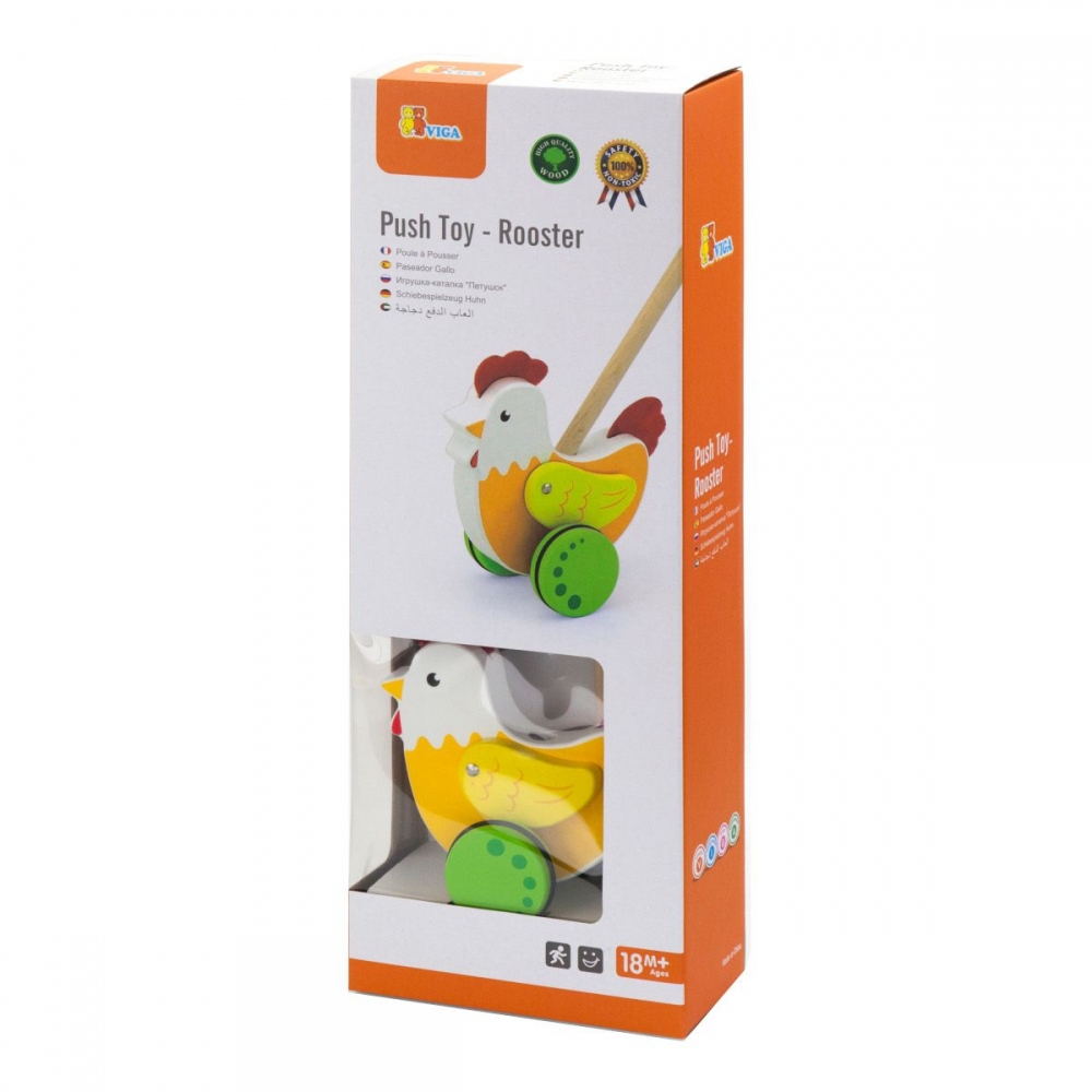 Dřevěná tahačka kohout. Rozměry kohouta cca 14 x 16 cm. Rozměry balení cca 18 x 50 x 8,5 cm. Věk 18m+