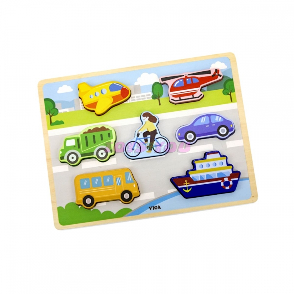 Dřevěná vkládačka s motivem dopravních prostředků. Rozměry dřevěné desky cca 30 x 22,5 cm. Rozměry balení cca 30 x 25 x 2 cm. Věk 18m+