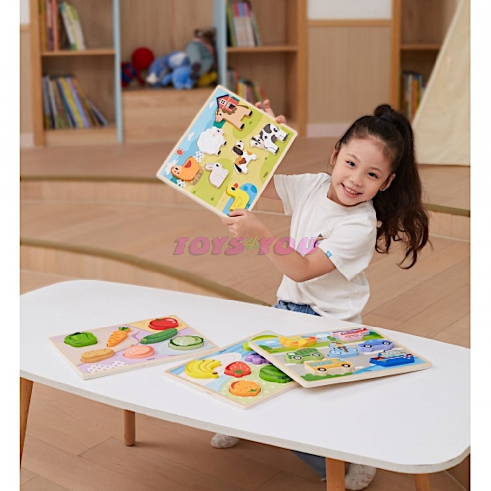 EAN: 6971608447044 Dřevěná vkládačka s ovocem. Rozměry dřevěné desky cca 30 x 22,5 cm. Rozměry balení cca 30 x 25 x 2 cm. Věk 18m+
