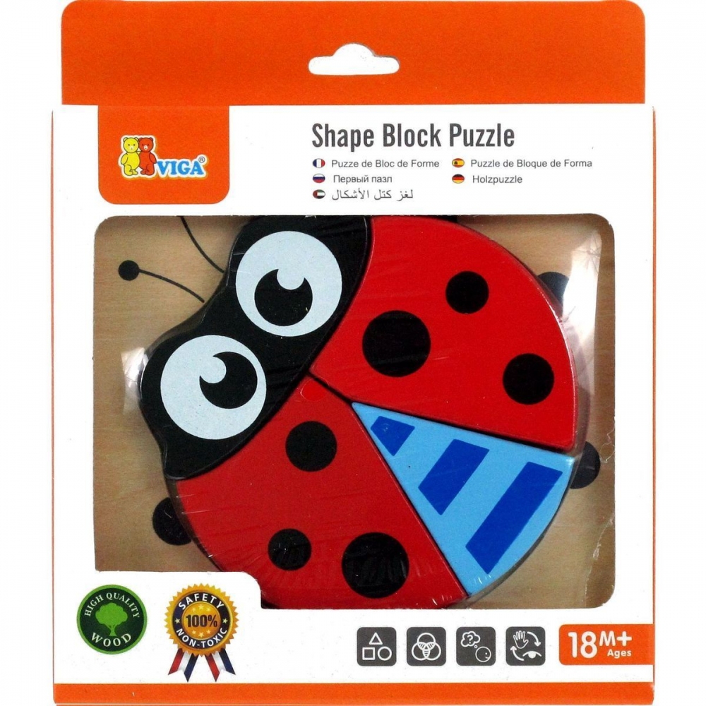 Dřevěné puzzle - vkládačka pro nejmenší s motivem berušky. Rozměry berušky cca 10 x 11 cm. Rozměry balení cca 15,5 x 18 x 2 cm. Věk 18m+