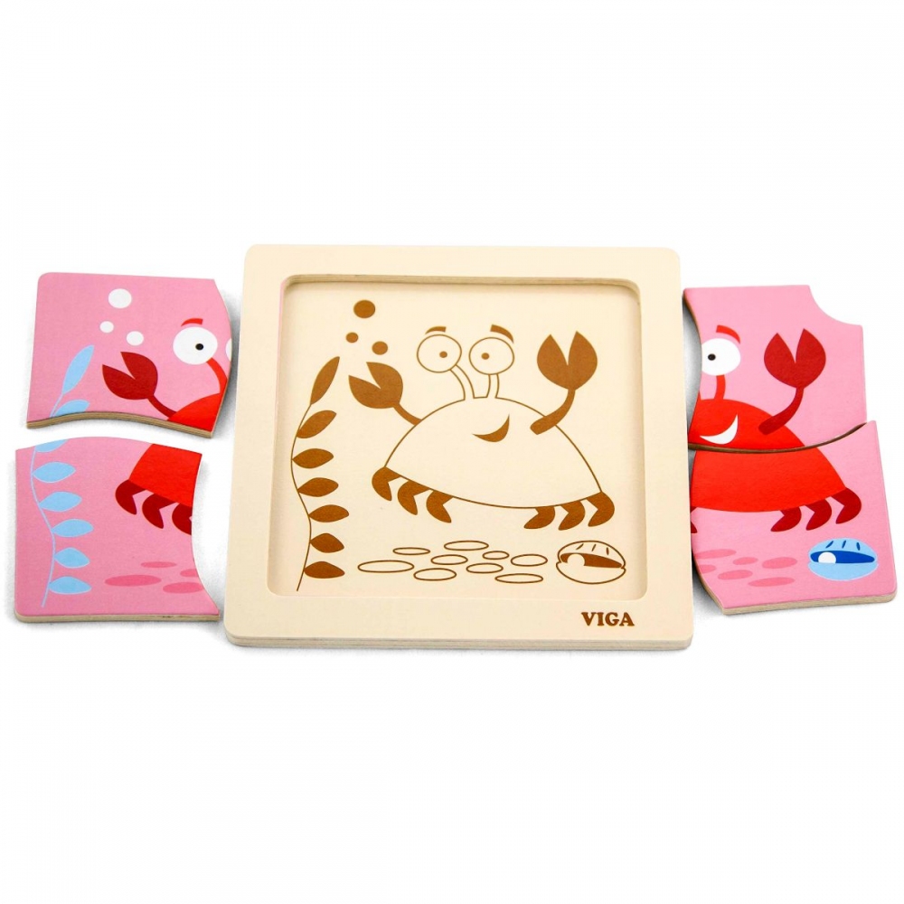 Dřevěné puzzle - vkládačka pro nejmenší s motivem kraba. Rozměry berušky cca 10 x 11 cm. Rozměry balení cca 15,5 x 18 x 2 cm. Věk 18m+