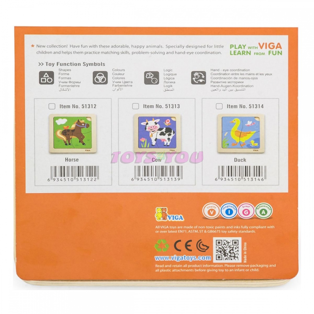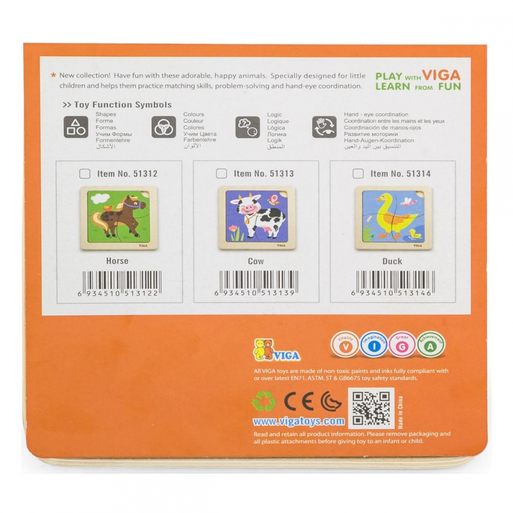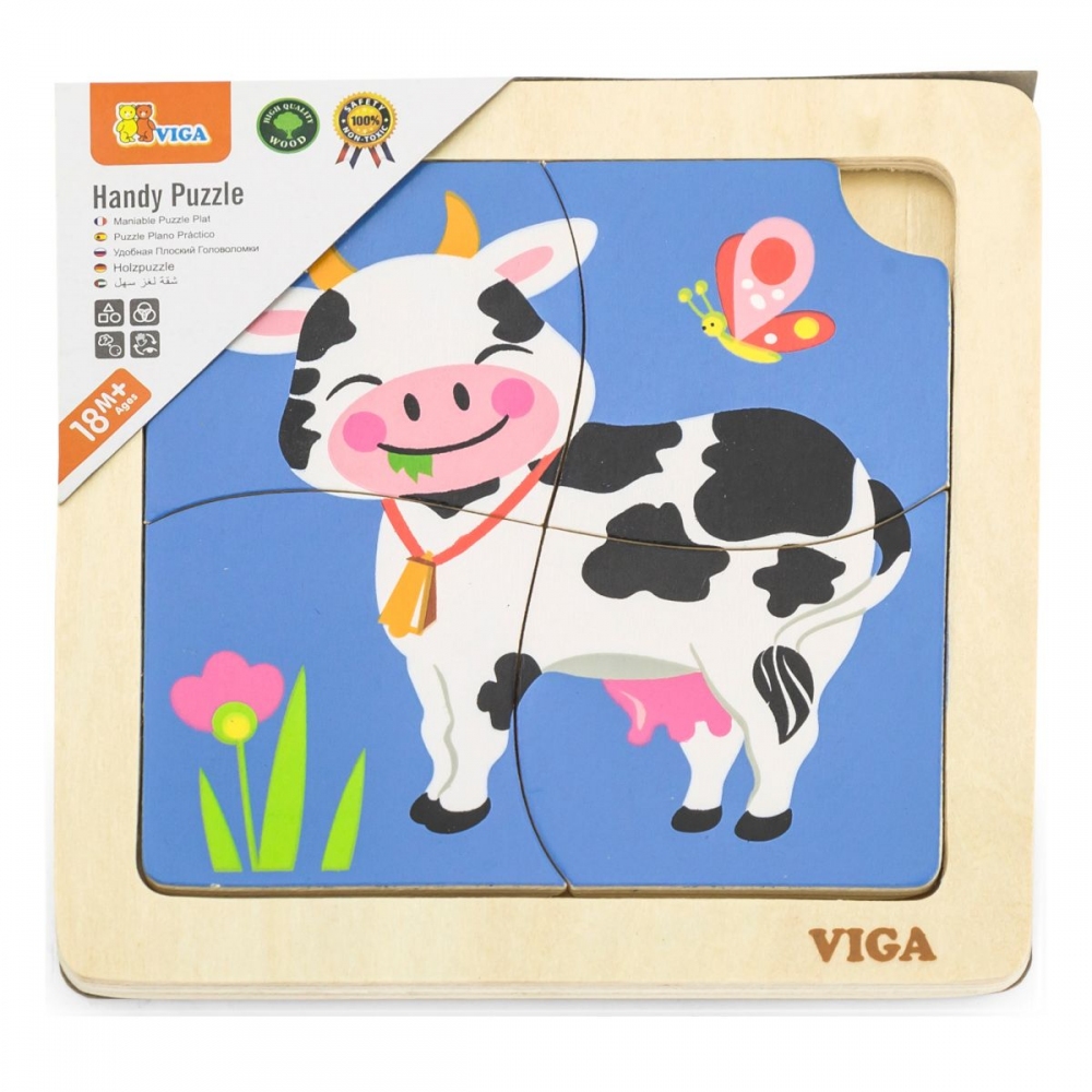 Barevné a atraktivní puzzle Kravička je skládačka, která nejen zabaví, ale také rozvíjí koordinaci ruky a oka a představivost dítěte. Pomocí podložky batole přiřazuje správné dílky puzzle. Veselá zvířátka v atraktivním designu podpoří rozvoj vašeho dítěte. Celá sada je vyrobena z bukového dřeva a natřena netoxickými barvami v zářivých barvách, které upoutají pozornost a podpoří hru a zároveň poskytnou spoustu zábavy. Naší prioritou je bezpečnost dětí a nejvyšší kvalita hraček, proto dbáme na to, aby barvy, které používáme k natírání našich hraček, byly netoxické a splňovaly bezpečnostní normy (EN71 a ASTM). Tato hračka je vhodná pro děti starší 3 let.
