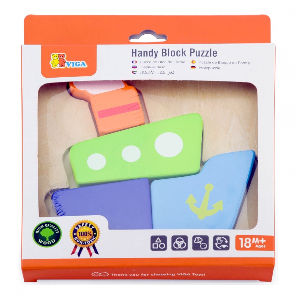 Dřevěné puzzle - vkládačka pro nejmenší s motivem lodě. Rozměry berušky cca 12,5 x 13 cm. Rozměry balení cca 15,5 x 18 x 2 cm. Věk 18m+
