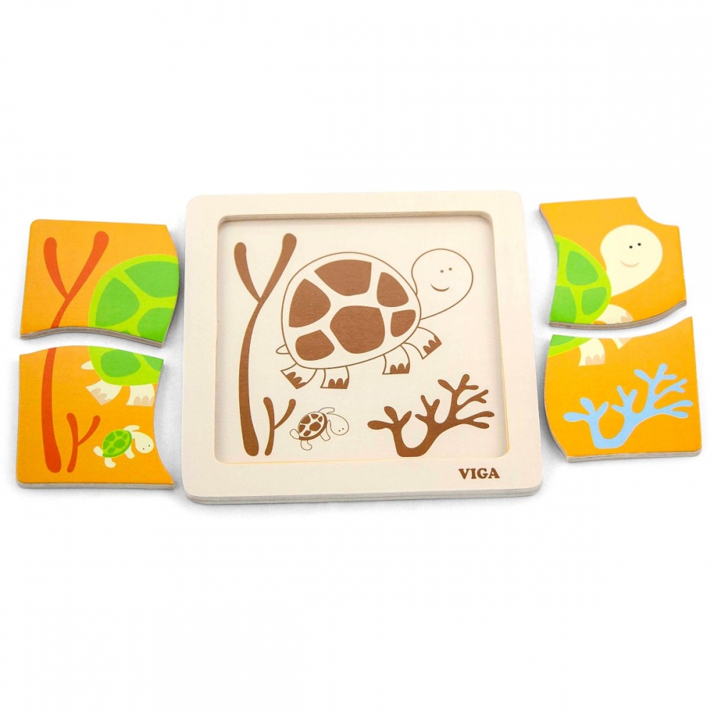 Dřevěné puzzle - vkládačka pro nejmenší s motivem želvy. Rozměry berušky cca 10 x 11 cm. Rozměry balení cca 15,5 x 18 x 2 cm. Věk 18m+