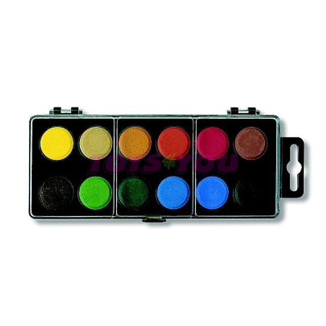 Vodové barvy 12 barevných odstínů s průměrem kalíšku 22,5 mm.