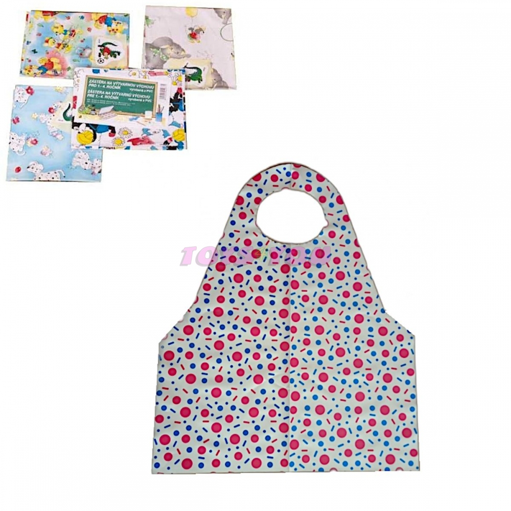 Zástěra školní pro výtvarnou výchovu. Vyrobena z PVC. V nabídce různé druhy podle momentální zásoby dodavatele.